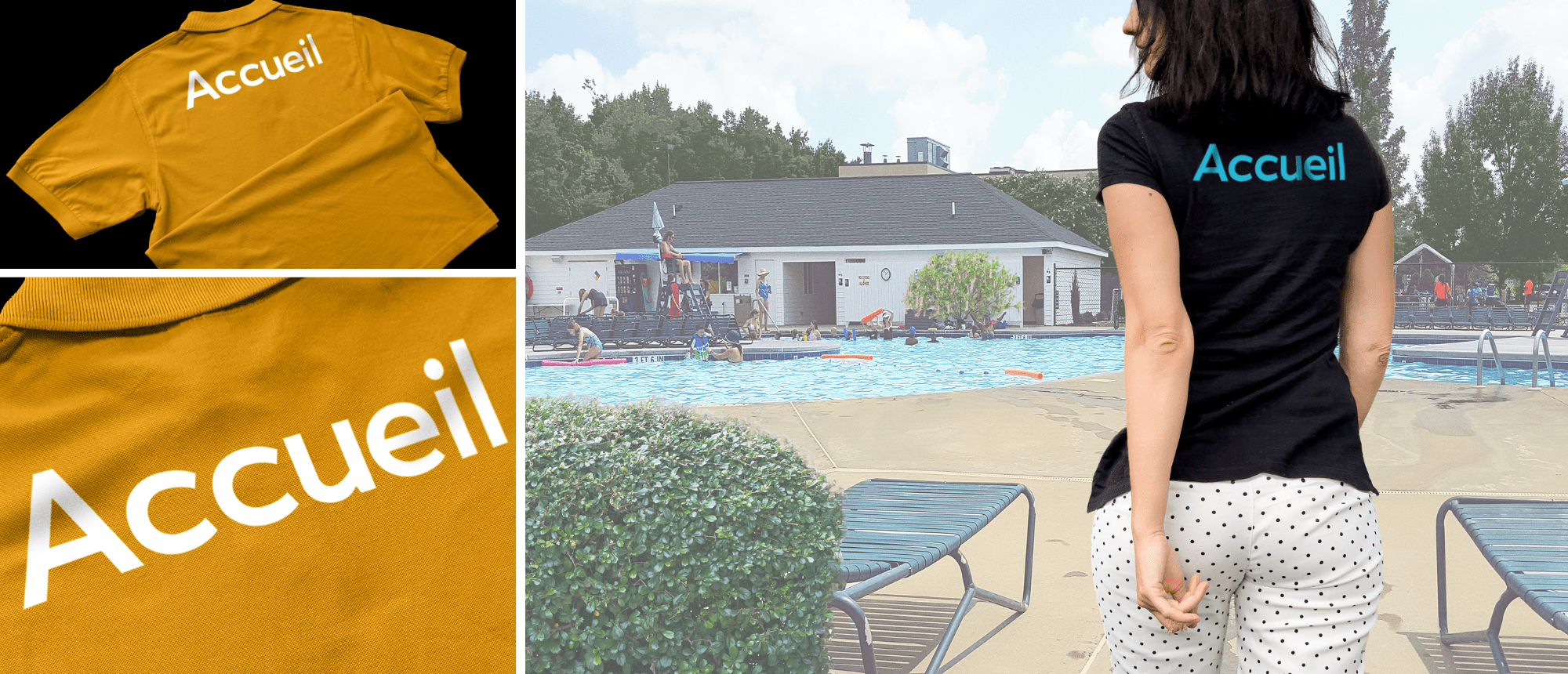 Disponible en trois coloris - blanc, bleu, rouge et noir -, il s’adapte facilement à vos textiles, clairs comme foncés. À la fois pratique, sobre et esthétique, le transfert Accueil permet une identification professionnelle immédiate du personnel : à la réception de villages vacances, points d'accueil de campings, conciergeries ou en salons professionnels, foires...